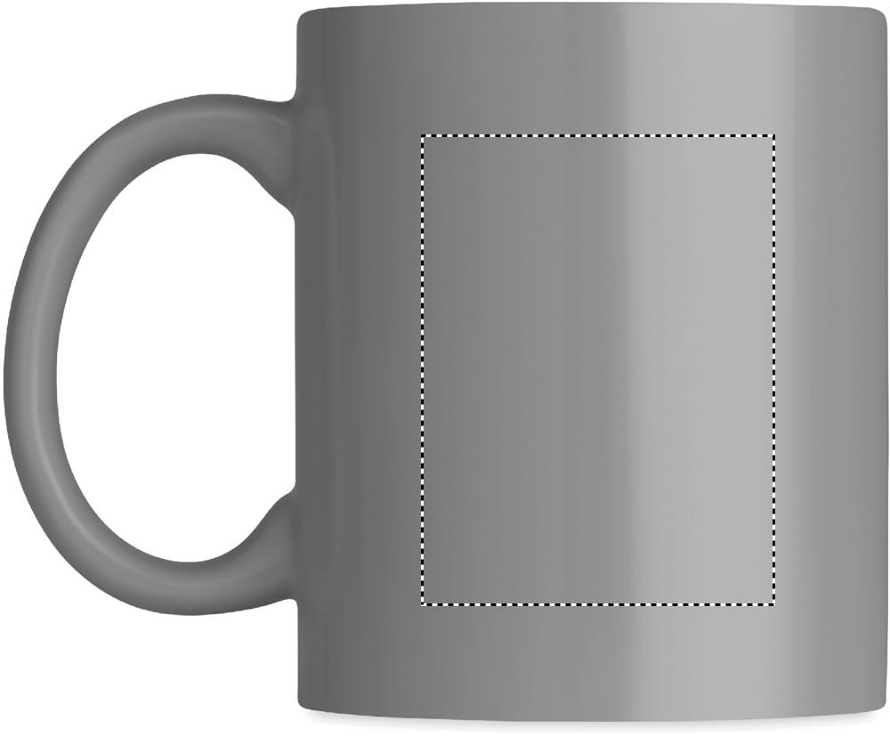 Keraaminen 300 ml muki, pakattuna aaltopahvi pakkaukseen. Keraamine siirtokuva on konepesun kestävä, tampopainatus ainoastaan käsinpesun kestävä.