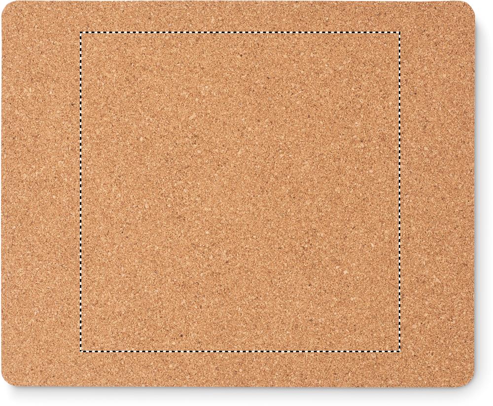 Korkista valmistettu hiirimatto. Korkki on luonnonmateriaali, strukturaalinen laatu ja pinnan huokoisuus voi aiheuttaa eroavaisuuksia tuotteissa painatuksen jälkeen