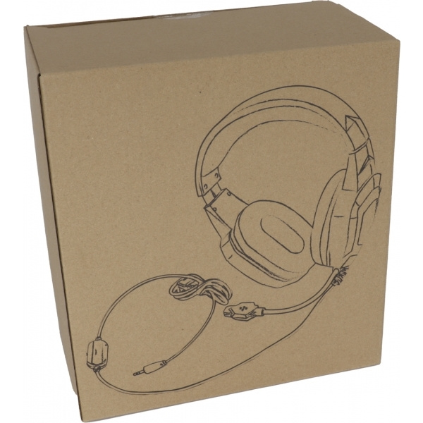Kuulokkeet surround-äänellä, mikrofonilla ja äänenvoimakkuuden säätimellä. Integroidun melunvaimennuksen ansiosta et kuule taustamelua. Logosi painetaan yhteen korvakuppiin.