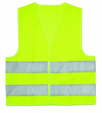Lasten huomioliivi, kahdella vaakasuoralla heijastavalla nauhalla.Tuote on 100% polyesteriä.