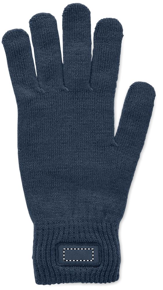 Neulotut käsineet pehmeästä joustavasta RPET-polyesteristä, joissa on kangasmerkki painatusta varten.
