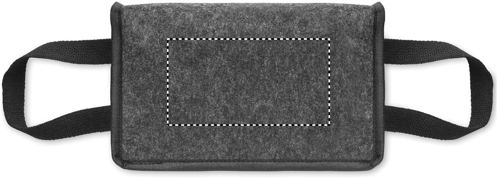 RPET-huopakylmälaukku, jossa on etutasku. 1 mm:n RPET-huopa ja 3 mm:n eristävä alumiinilaminoidut foliot. Tilavuus: 5 L.