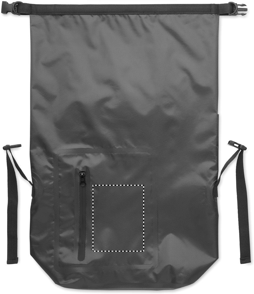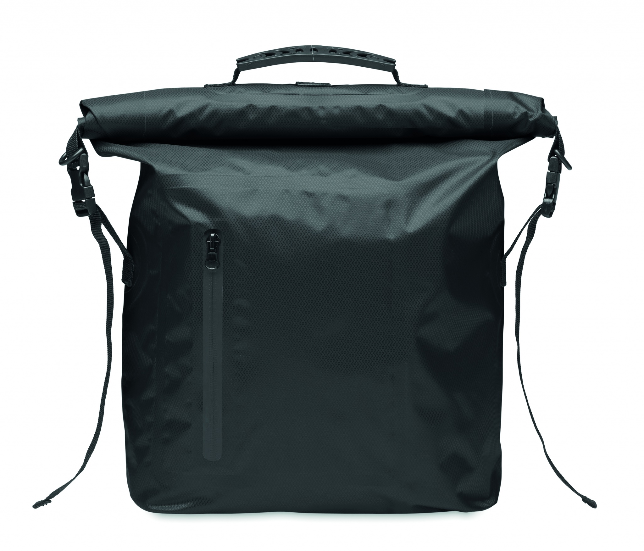 RPET 210D valmistettu vedenpitävä rolltop-reppu. Reppu suljetaan yläreunasta rullaamalla. Tilavuus 30L.
