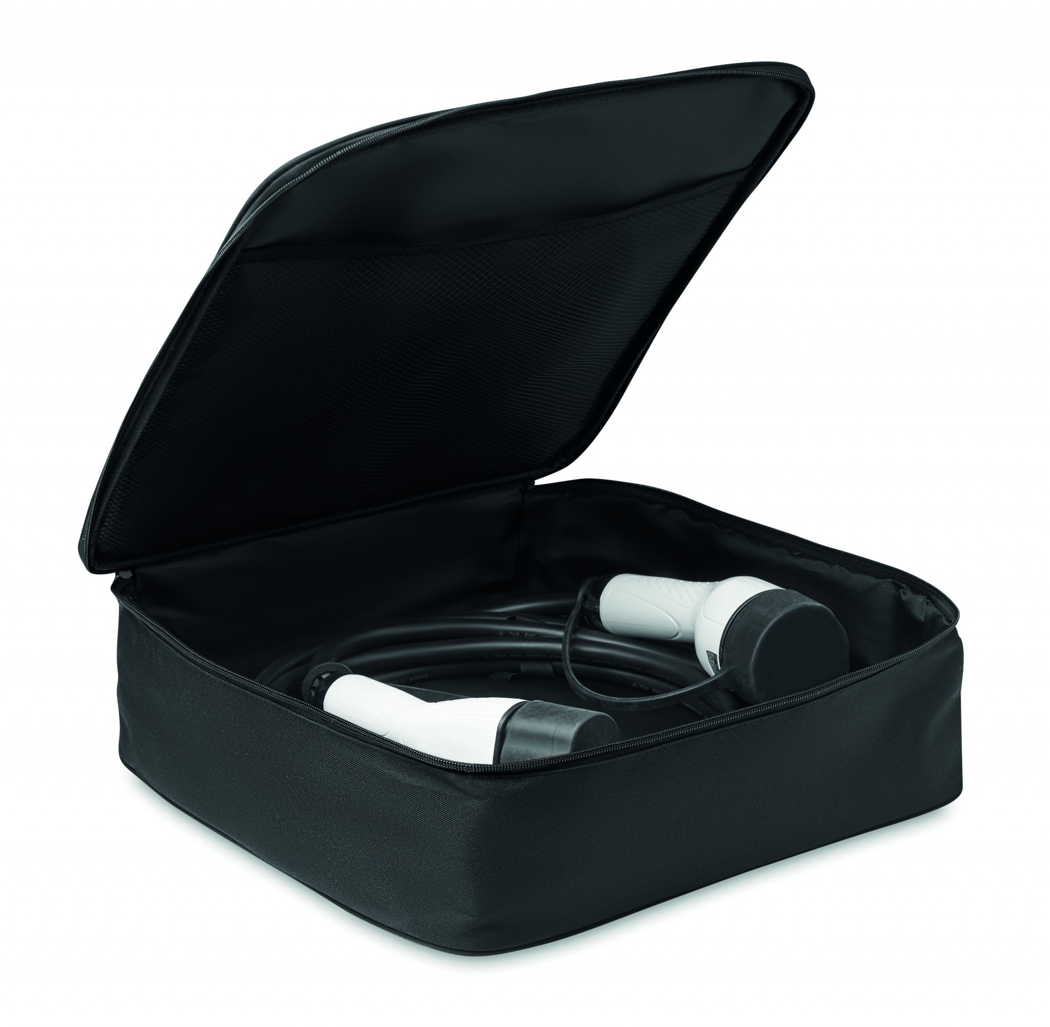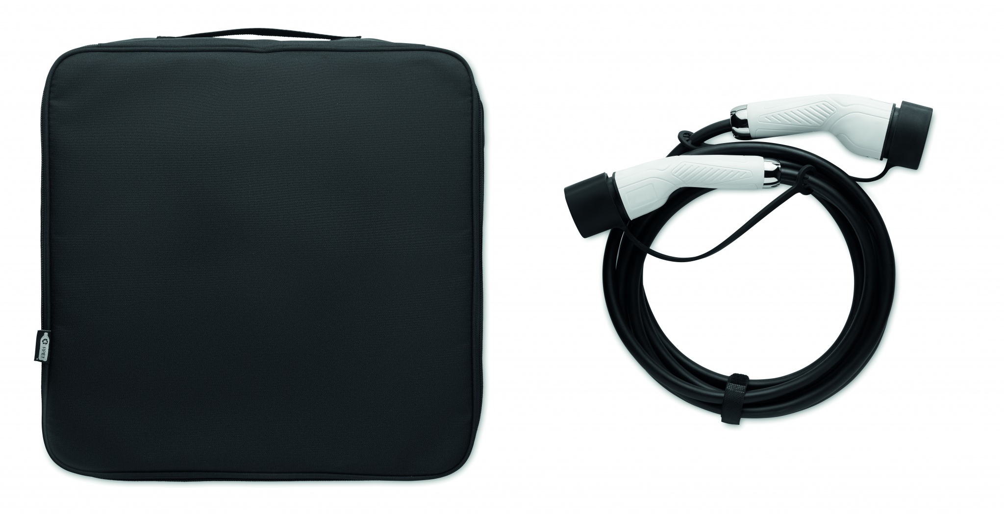 Kestävä pehmustettu latauskaapelin säilytyslaukku 600D RPET-materiaalista.