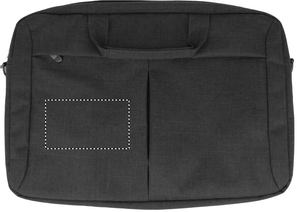 360D- polyesterinen tietokonelaukku 2 eri sävyssä, sisältää yhden päälokeron 15 tuuman kannettavalle tietokoneelle ja yhden vetoketjullisen etutaskun. Irrotettava ja säädettävä olkahihna. Takana lenkki vetolaukun kahvaa varten.