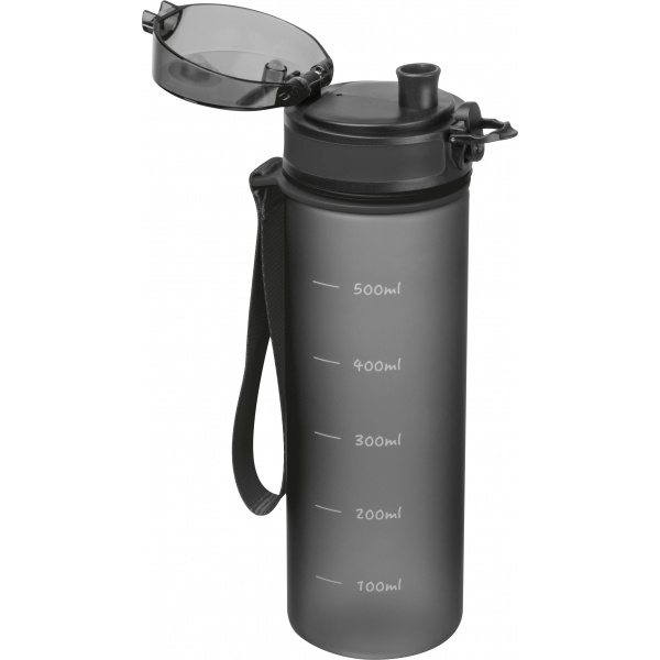Vuotamaton vesipullo Tritanista mitta-asteikolla ja kantohihnalla. Kestävä materiaali tekee pullosta erityisen pitkäikäisen kumppanin, eikä sisällä BPA:ta.