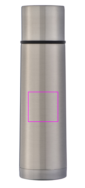 Ruostumattomasta teräksestä valmistettu 500 ml:n täyttöpullo ja kannessa integroitu kuppi. Logosi kaiverretaan.