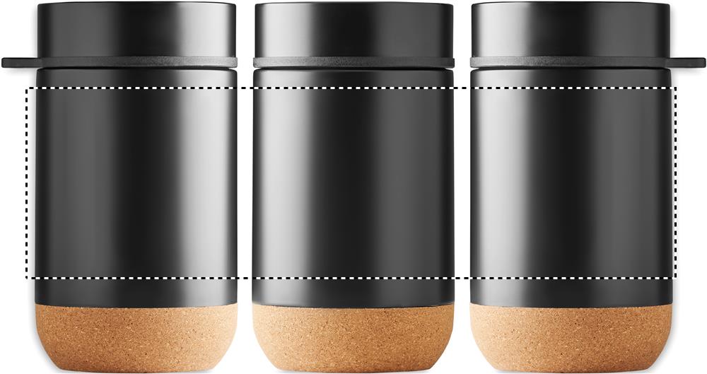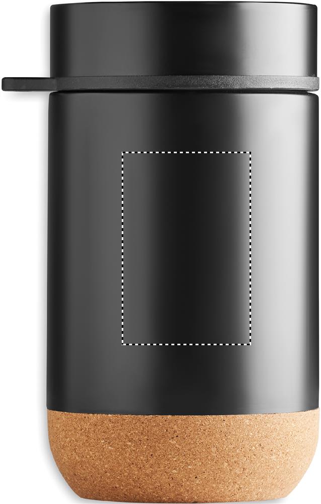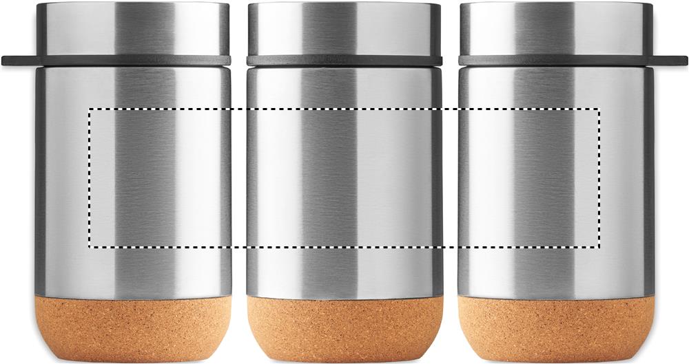Dvigubos sienelės nerūdijančio plieno izoliuotas indas su užsukamu dangteliu ir kamščio pagrindo detale. Apima šaukštą. Talpa: 400ml. Kamštiena yra 100% natūrali medžiaga. Dėl savo struktūrinio pobūdžio ir paviršiaus poringumo galutinis spausdinimo rezultatas kiekvienam gaminiui gali turėti nukrypimų.