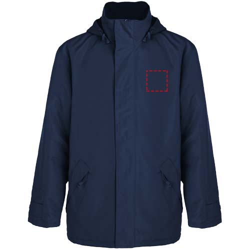 Paminkštinta vandeniui atspari striukė. Centrinis suformuotas užtrauktukas su atitinkamu atvartu. Aukštas kaklas su atlenkiamu gobtuvu. Šoninės kišenės su užtrauktuku ir atvartu. Reguliuojami rankogaliai su petnešėlėmis. Dvi vidinės kišenės su kabliuku ir kilpeliu. Užtrauktukas prie vidaus apdailos. Atsparus vandeniui. Atsparus vėjui. Modelių ūgis 120/122 cm, dėvi 6 dydį.