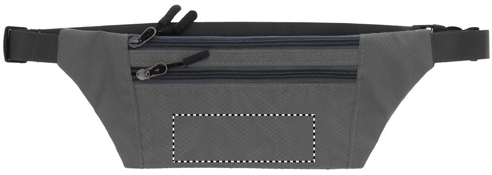 Fanny soma no žakarda poliestera ar 2 rāvējslēdzējiem priekšpusē un 1 rāvējslēdzēju aizmugurē un regulējamu jostas siksnu.