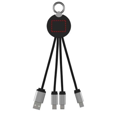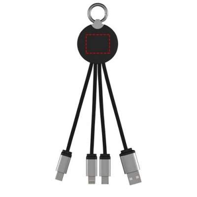 Uzlādes kabelis ar apgaismojumu ar logotipu ar gumijas un metāla apdari, kas aprīkots ar trim savienotājiem (C tips, Android, iPhone). Vienlaikus var uzlādēt līdz trim ierīcēm. Kabeļu garums (ieskaitot spraudņus): 10 cm. Pārstrādāta PET plastmasas kabelis un iepakojums ir izgatavots no otrreiz pārstrādāta papīra un pārstrādātas plastmasas.