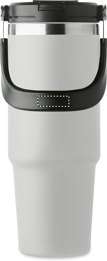 Double wall recycled stainless steel (90% recycled stainless steel and 10% stainless steel) tumbler with lid with inner straw, foldable mouth piece and direct drinking opening . Capacity 850 ml.