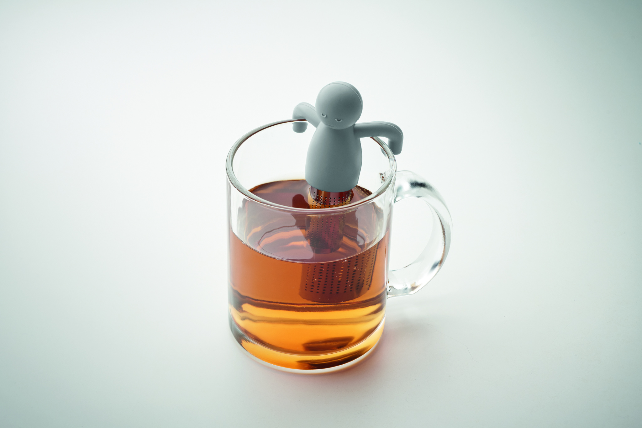 Funny tea infuser for loose tea leaf. Little man shape in silicone and filter in stainless steel.