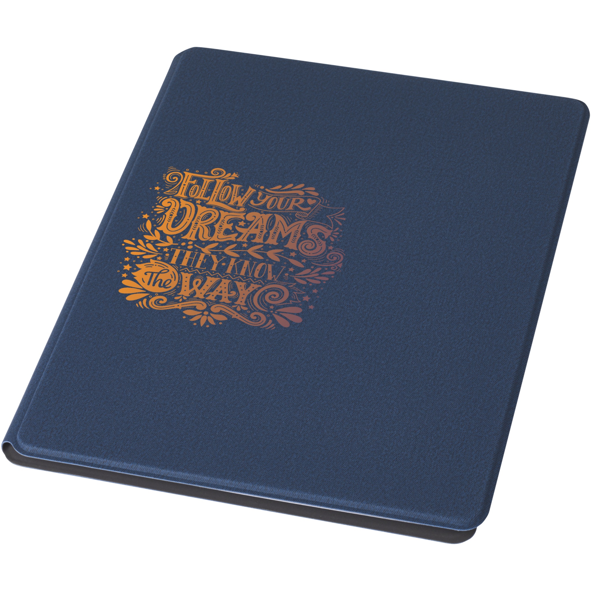 Папка-органайзер Kunveno, сертифицированная RCS, частично изготовлена из полиэстера, бывшего в употреблении, что делает данную папку более экологичным выбором, поскольку она помогает сократить использование первичного сырья. Имеет магнитную застежку и 20 белых листов в линейку из переработанной бумаги плотностью 80 г/м² из экологически чистых источников.