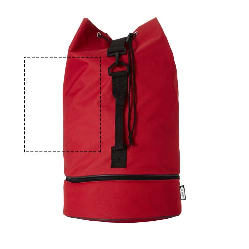 Водонепроницаемый спортивный вещмешок из переработанного РЕТ-пластика с вместительным 20 основным отделением объемом 20 литров, застежкой на шнурке, боковой ручкой и регулируемым плечевым ремнем. Также имеет отдельное нижнее отделение на молнии для небольших предметов.