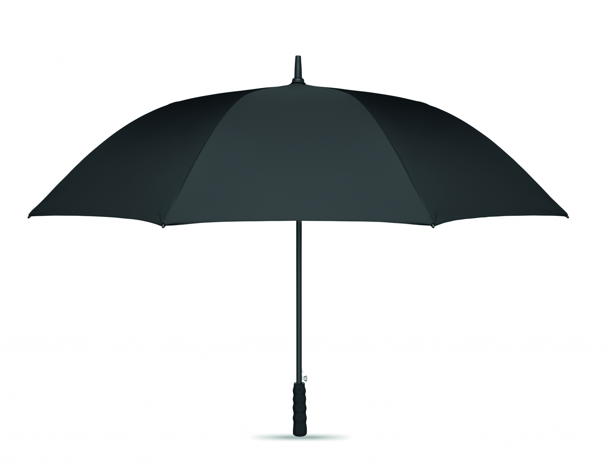 27-дюймовый зонт устойчивый к ветру с автоматическим раскрытием из переработанного эпонжа 190T. Стержень и спицы из стекловолокна. Ручка из переработанной пшеничной соломы и пластика. Пластиковые наконечники и верхняя часть.