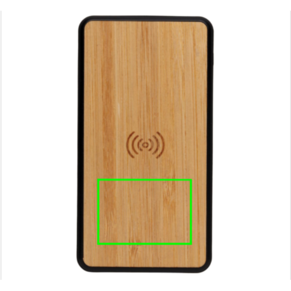 8.000 mAh powerbank med trådlös laddning tillverkad av RCS (Recycled Claim Standard) certifierad återvunnen ABS med soft touch finish och FSC®certifierad bambu. Totalt återvunnet innehåll: 20% baserat på total produktvikt. RCS certifiering säkerställer en helt certifierad leveranskedja av de återvunna materialen. Stödjer 5W trådlös laddning samt laddning med kabel via USB port. Input både Type C och micro USB. Med en fulladdad powerbank kan du ladda din mobil upp till fyra gånger. Powerbanken har ett A-graderat 8.000 mAh lithium polymer-batteri. Strömindikatorn visar energinivån så att du vet när det är dags att ladda på nytt. Micro input 5V/2A Type-C input 5V/2A USB Output 5V/2.4A. Trådlös Output 5W 5V/1A. Laddningskabel i RCS certifierad TPE medföljer. Levereras i FSC® mix förpackning.