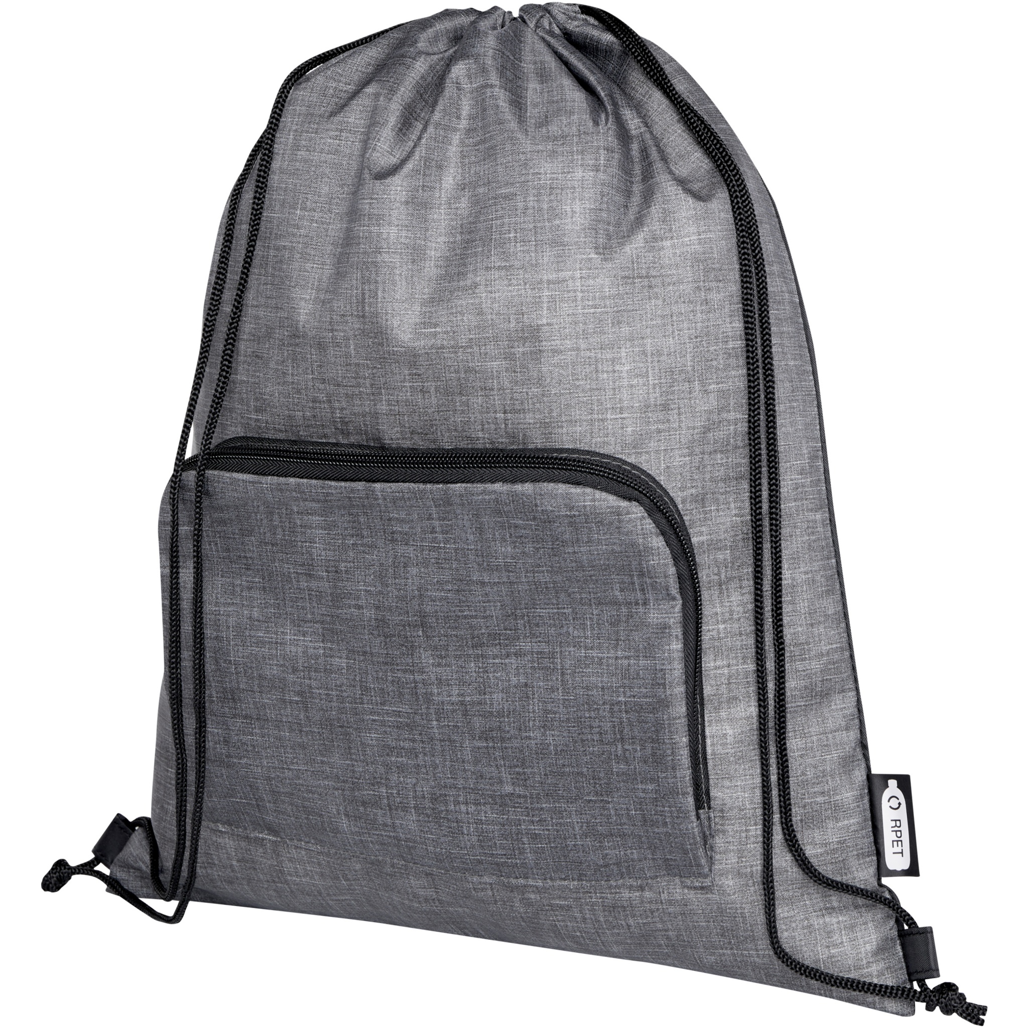 Ash återvunnen vikbar väska med dragsko har ett huvudfack med dragskoförslutning och en blixtlåsförsedd framficka som väskan enkelt kan vikas ihop i för enkel transport och förvaring.
