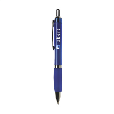 Kulspetspenna i blått eller svart bläck med genomskinlig färg, halkfritt grepp och metallklämma.