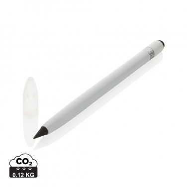 Bläckfri aluminiumpenna med suddgummi, vit