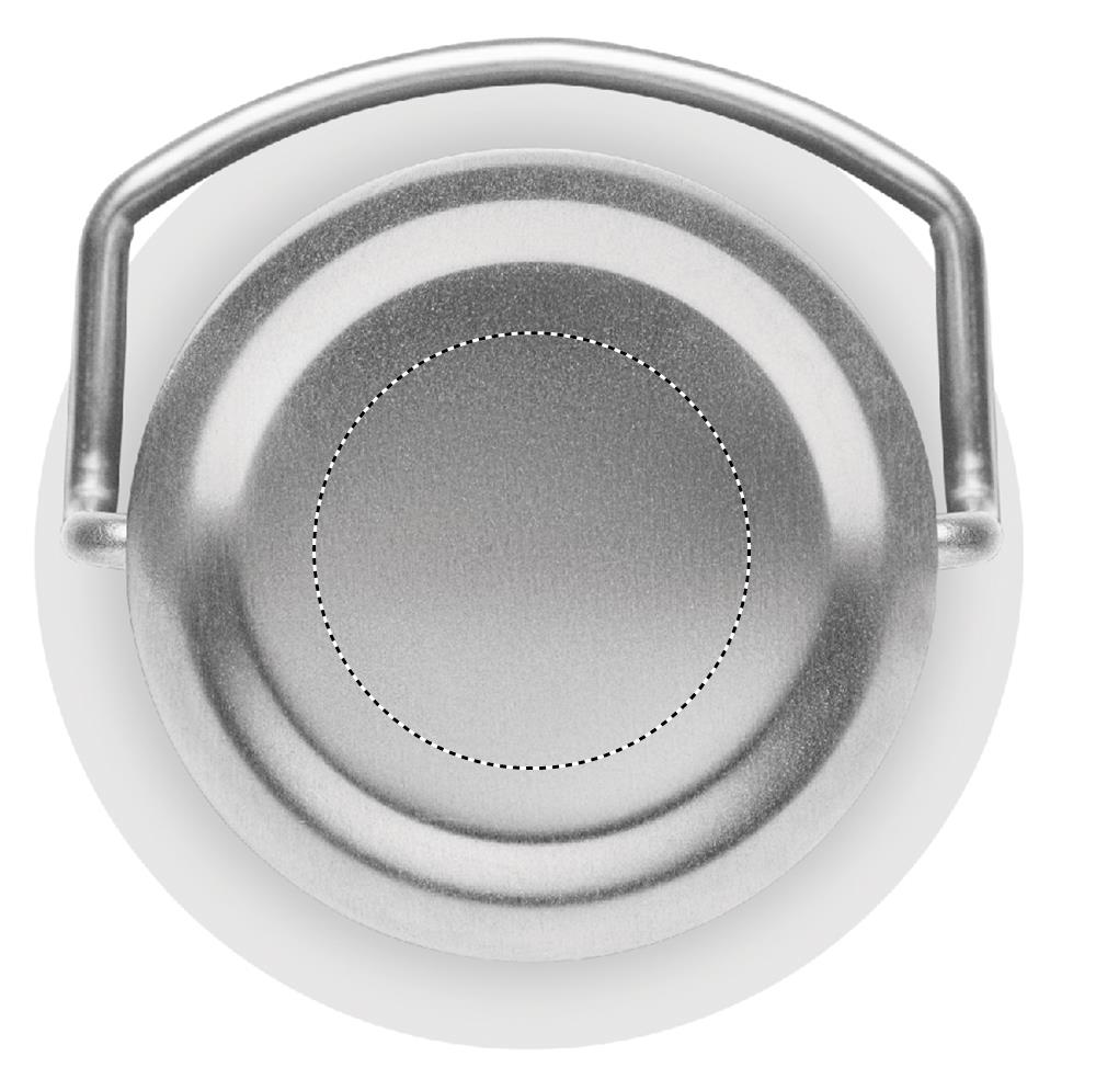 Termo flaska i återvunnet rostfritt stål med dubbla väggar för varma eller kalla drycker med korkbotten. Metallkork med bärhandtag. Volym 500ml. Läckagefri. (90% återvunnet rostfritt stål och 10% rostfritt stål).
