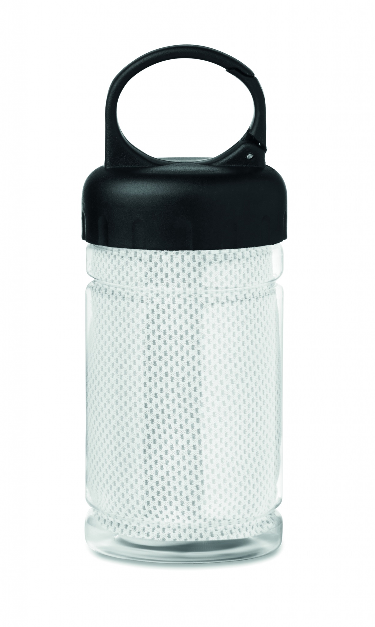 Vattenflaska i PET med träningshandduk i microfiber. Använd handduken för att torka av träningsredskapen. Trevlig gåva som uppmuntrar träning och aktivitet.