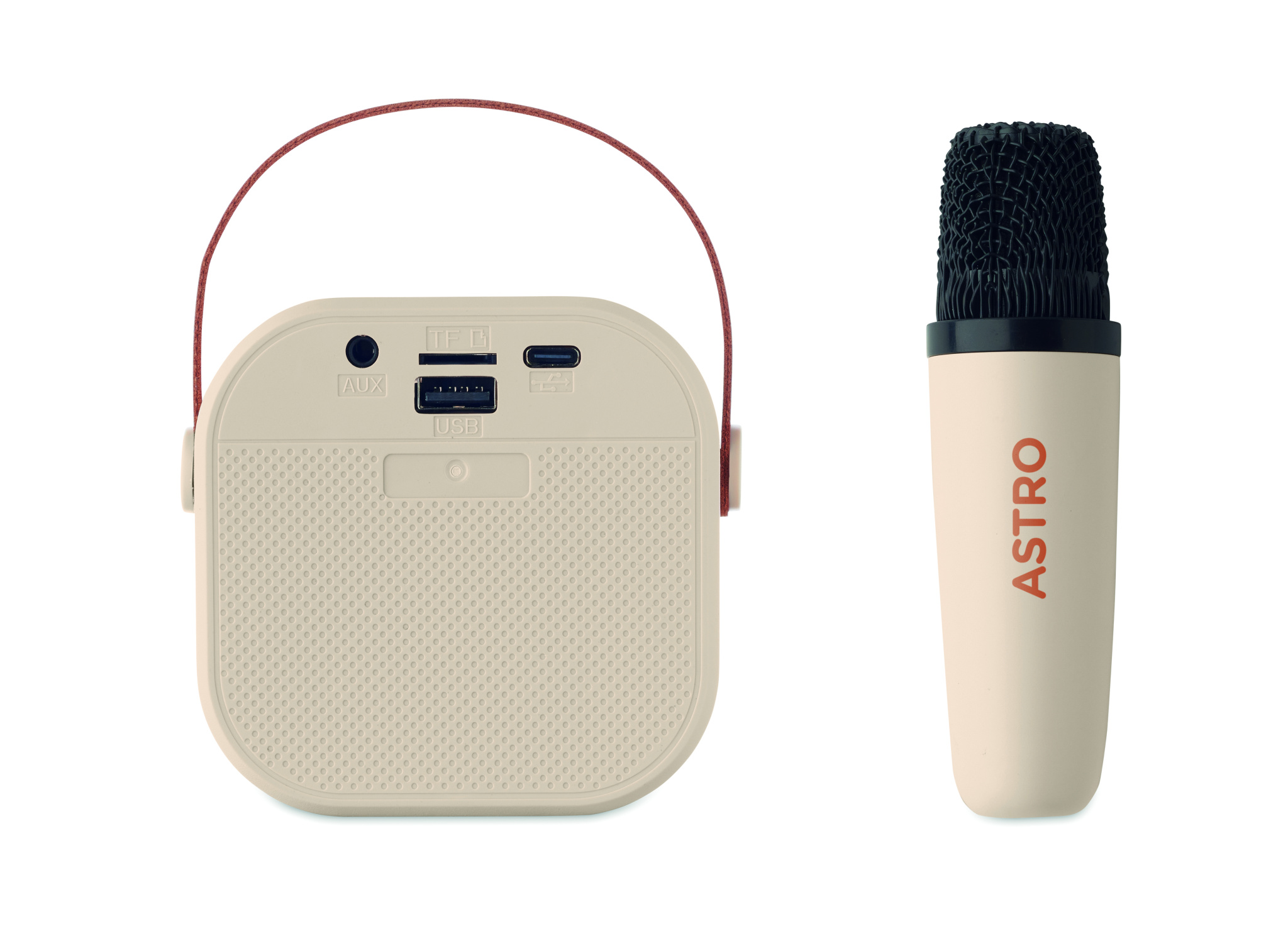 Karaoke-set med 5W trådlös högtalare med LED-ljus som ändrar färg i återvunnen ABS med PU-handtag och mikrofon. Inbyggd 800 mAh batterihögtalare och 400 mAh batterimikrofon.