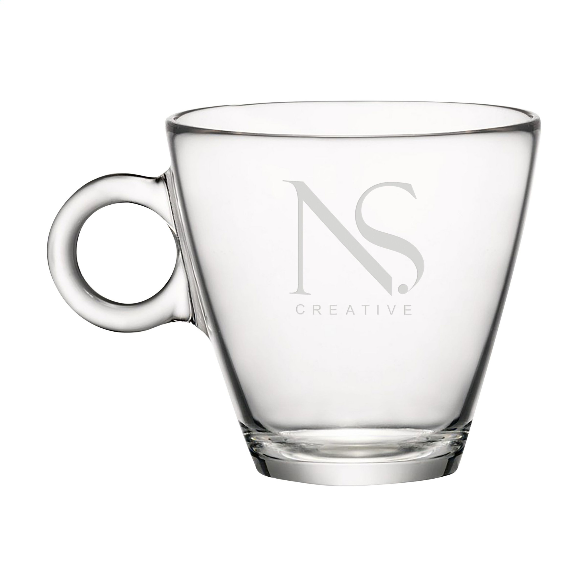 Espressoglas med modern design. Tillverkad av högkvalitativt härdat glas. En tidlös form med ett slående handtag. På grund av sin form och storlek passar detta glas perfekt i nästan vilken kaffemaskin som helst. Kapacitet 100 ml. Tillverkad i Italien.