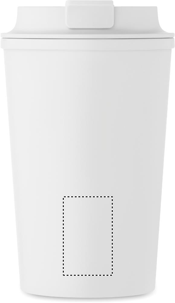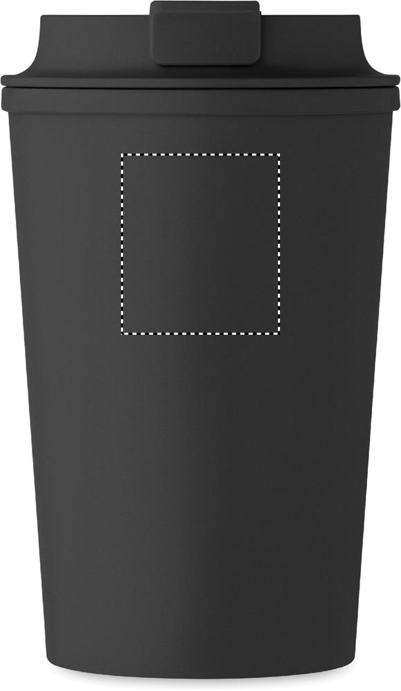 Dubbelväggig mugg i PLA-majs med lock i återvunnen PP med invändig TPR. Volym: 350 ml.