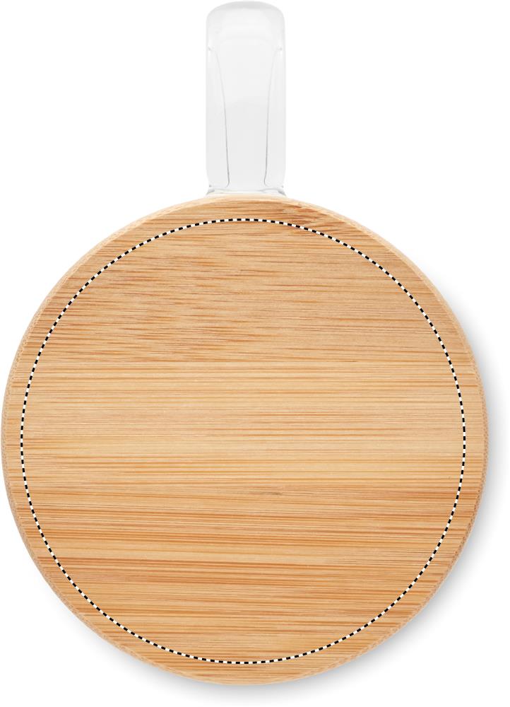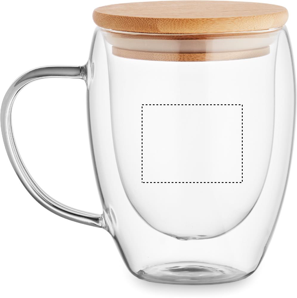Mugg i borosilikatglas med dubbla väggar, handtag och lock i bambu. Kapacitet: 250 ml.