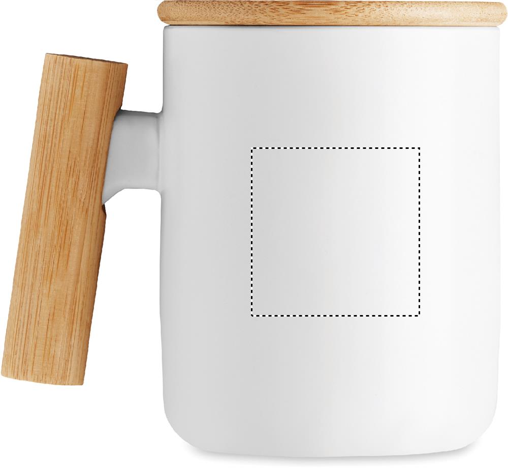 Porslinsmugg med lock och handtag av bambu. Kapacitet: 380 ml.