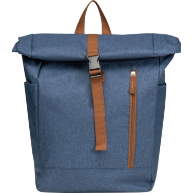 Ryggsäck av 500D polyester med vikbar eller rullbar stängning, vadderade remmar, bärhandtag och låsbart frontfack. Din logotyp kommer att tryckas på det främre facket.