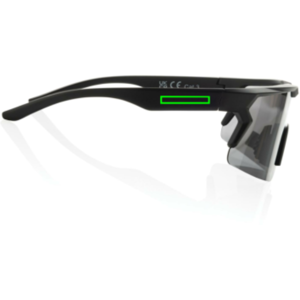 Polariserade solglasögon i sportdesign tillverkade med RCS-certifierad ram av återvunnen PC. Totalt återvunnet innehåll: 65% baserat på artikelns totala vikt. RCS-certifieringen säkerställer en helt certifierad leveranskedja för återvunnet material. Inklusive fodral av återvunnen RPET att förvara glasögonen i. Linserna är polariserade vilket eliminerar reflekterande solljus och gör dem idealiska för sport och utomhusaktiviteter. Överensstämmer med EN ISO 12312-1, UV 400 och CAT 3. Förpackade i en FSC®-presentförpackning