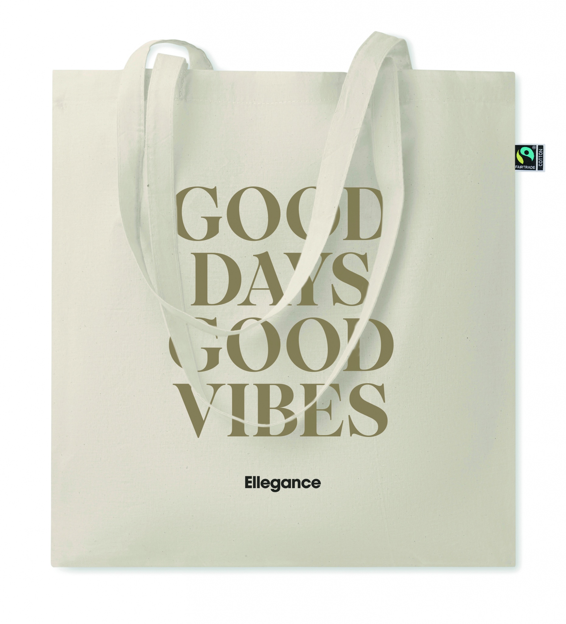 Fairtrade tygkasse i bomull med långa handtag. 140 gr/m².
