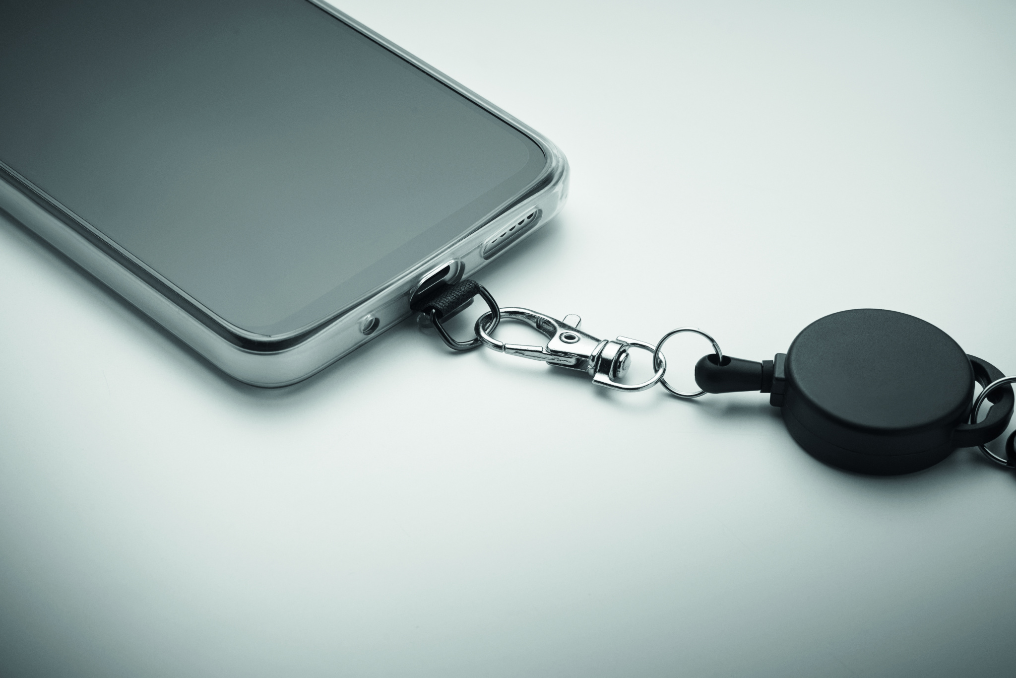 Jojo för telefon- och/eller korthållare i ABS med karbinhake i aluminium. Karbinhaken är inte avsedd för klättring (icke-professionell användning).